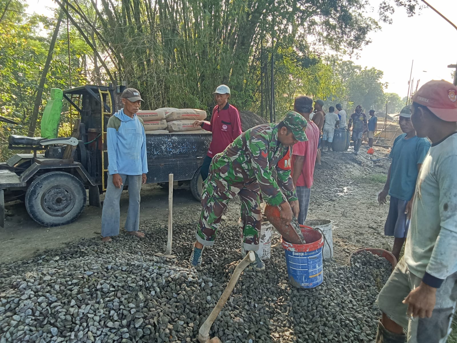 Kegiatan ini merupakan wujud nyata sinergi TNI dan rakyat dalam mendukung pembangunan infrastruktur guna menunjang konektivitas dan mobilitas warga. Sejak pagi, tim gabungan bekerja maksimal mulai dari pengerjaan pondasi, pengangkutan material, hingga proses pengecoran.